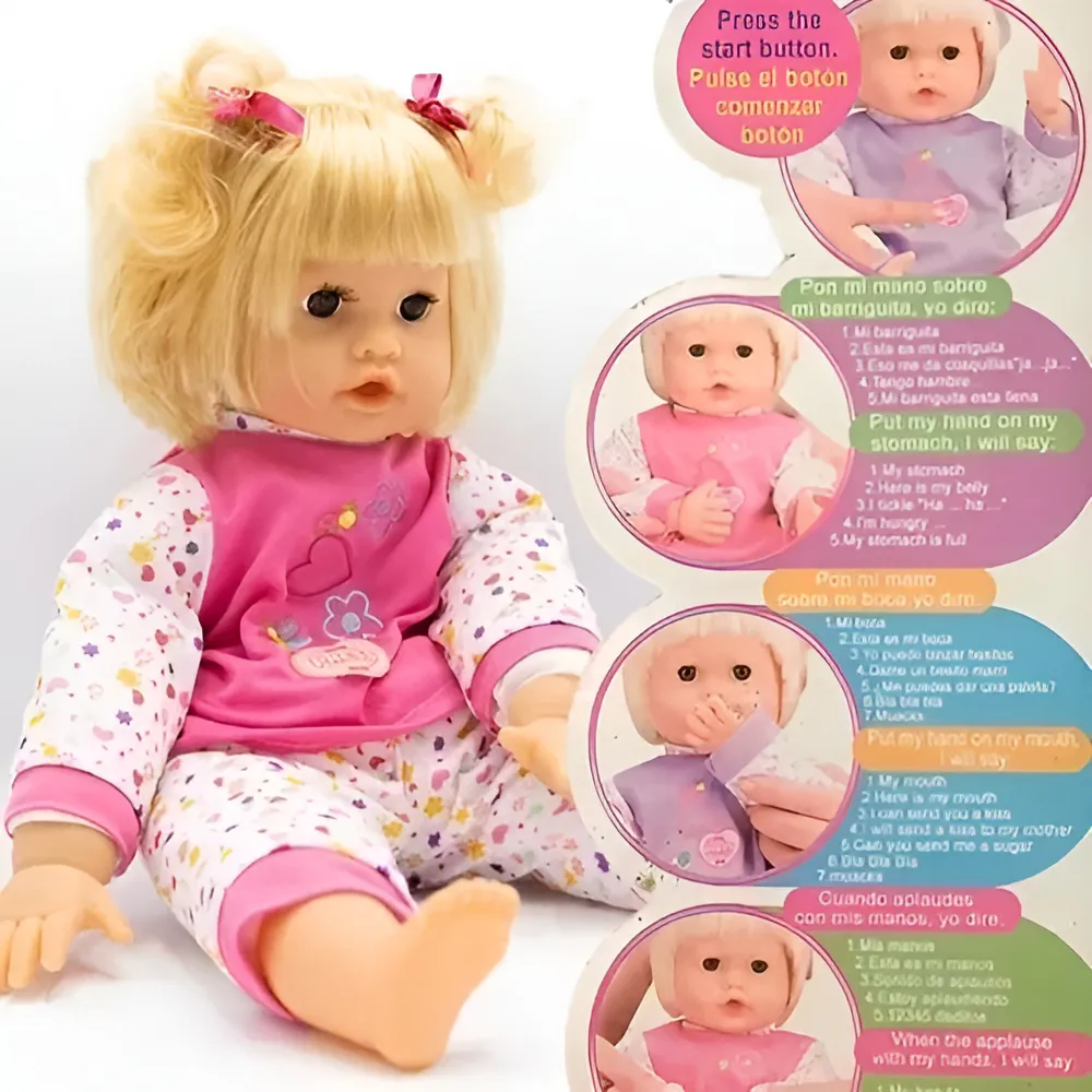 - Interactividad: La muñeca cuenta con sensores interactivos en sus manos, barriguita, boca, orejas y ojos. Al tocarlos, la muñeca dice diferentes frases y sonidos relacionados con esa parte del cuerpo.