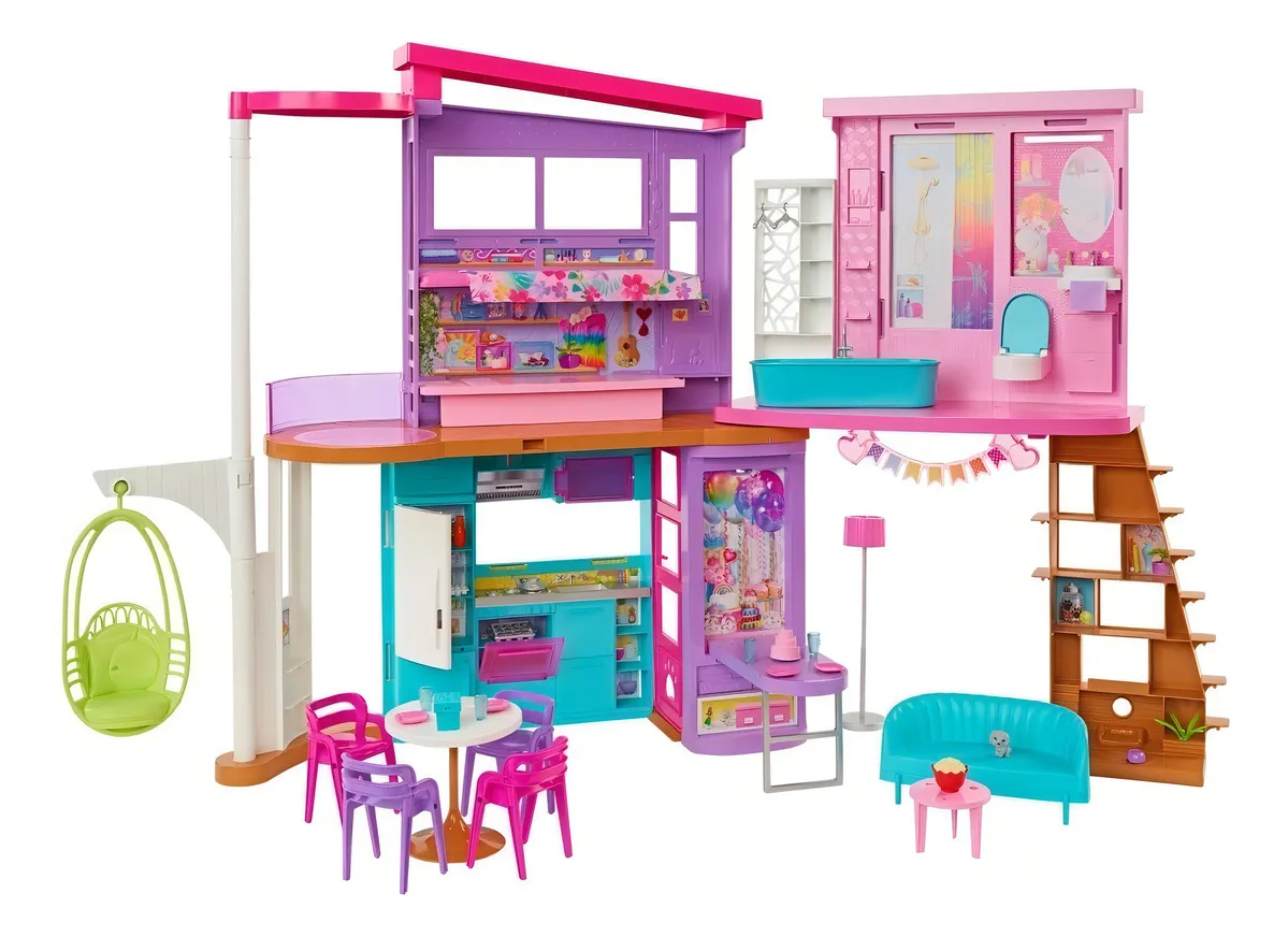 La Casa de Muñecas Barbie Malibu Color Multicolor es el sueño hecho realidad para las pequeñas amantes de Barbie. Con una amplia gama de accesorios incluidos, como una bandeja de cupcakes, un cepillo de dientes, un columpio tipo hamaca, una lámpara, una manta, una mesa auxiliar, una mesa de comedor, un paste, una planta, un sofá, un tazón de palomitas, un tazón para perro, una toalla y cuatro sillas, esta casa de muñecas ofrece infinitas posibilidades de juego y diversión.