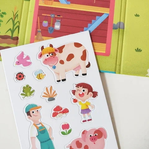 Libro didactico sensorial con piezas magneticas para armar rompecabezas de animales de la granja